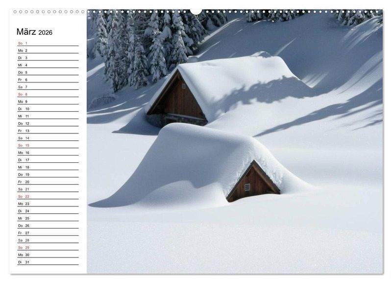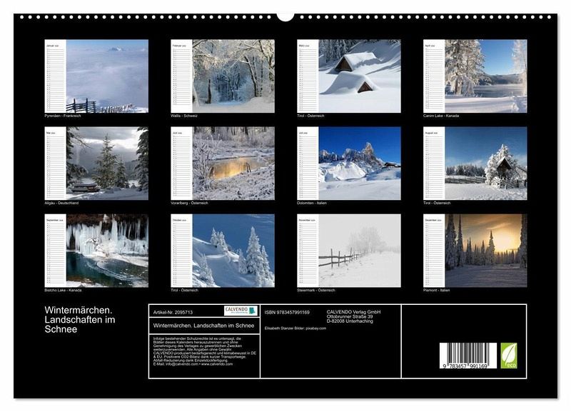 Diese märchenhaften Winterlandschaften wecken die Sehnsucht nach Urlaub und Erholung in unberührter und schneebedeckter Natur. Ein schöner Planer für die gesamte Familie.