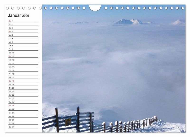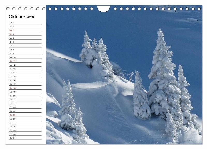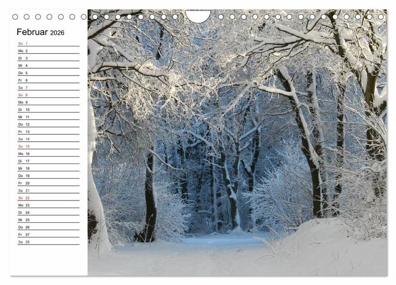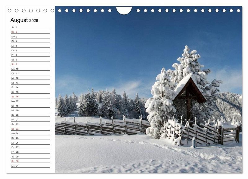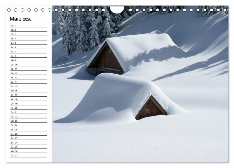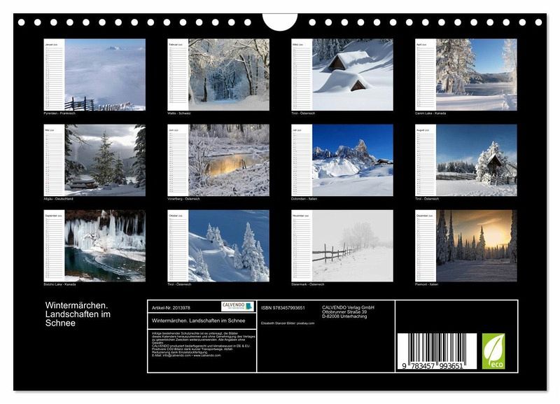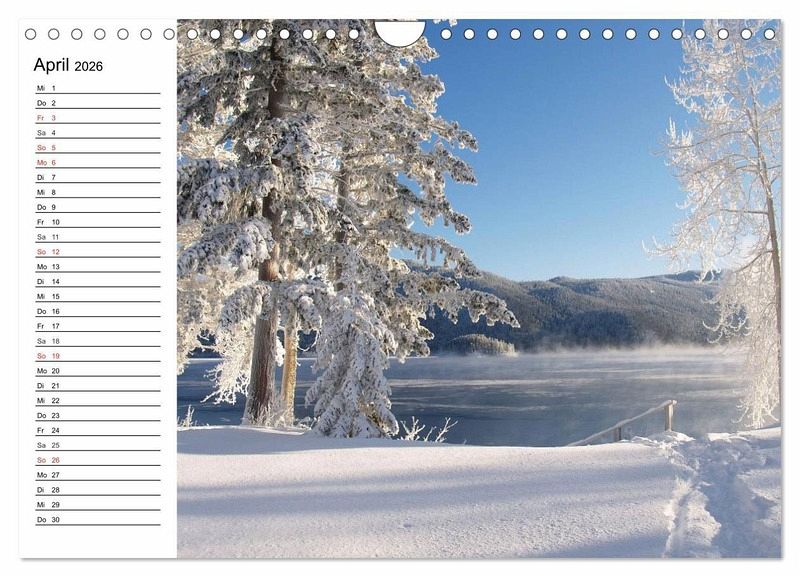 Diese märchenhaften Winterlandschaften wecken die Sehnsucht nach Urlaub und Erholung in unberührter und schneebedeckter Natur. Ein schöner Planer für die gesamte Familie.