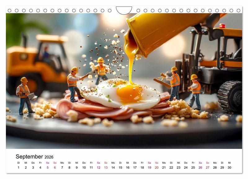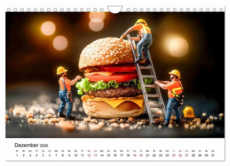 Willkommen in einer Welt, in der die kleinsten Hände die größten Aufgaben übernehmen. Lassen Sie sich entführen in ein charmantes Miniatur-Universum voller Fleiß, Teamgeist und liebevoller Details. Hier schleppen winzige Arbeiter Reiskörner, um ein perfektes Sushi zu formen, während andere mit vereinten Kräften einen turmhohen Salat-Käse-Gemüse-Burger aufschichten. Ein saftiger Apfel wird sorgfältig mit winzigen Feilen bearbeitet - überall sind die kleinen Helfer geschäftig am Werk. Mit unermüdlichem Eifer zeigen sie, dass keine Aufgabe zu groß ist, wenn man zusammenhält. Jedes beeindruckende KI-Bild lädt zum Staunen ein und zaubert ein Lächeln ins Gesicht. Perfekt für alle, die das Besondere lieben und sich jeden Monat an neuen, kreativen Szenen erfreuen möchten.