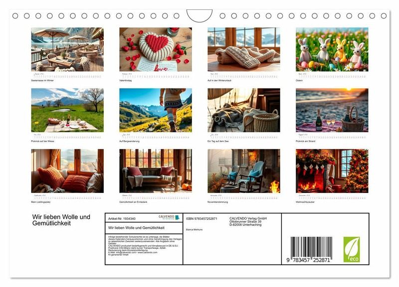 QUALITÄT - Hochwertiger Fotokalender mit 12 wunderschönen Motiven auf lichtbeständigem Bilderdruckpapier, robuste Spiralbindung mit Aufhängebügel.NACHHALTIG - deutliche Abfallreduzierung durch bedarfsgerechte Einzelstückfertigung, umweltfreundliches FSC-zertifiziertes Papier, Produktion in Deutschland, klimabewusste Logistik.PERFEKTES GESCHENK - Kalender für Freunde und Familie, für Kinder und Erwachsene, jung und alt, zu Weihnachten, Geburtstag oder zwischendurch.VIELFALT - Bildkalender in verschiedenen Formaten, z.B. DIN A5, DIN A4, DIN A3 sowie DIN A2. Ob Naturmotiv, Gemälde oder Fotos, ideal für ein persönliches Wohlfühlambiente.Kuschelige Woll-Designs in liebevollen Bildern von Autor(in): Bianca Mehruns