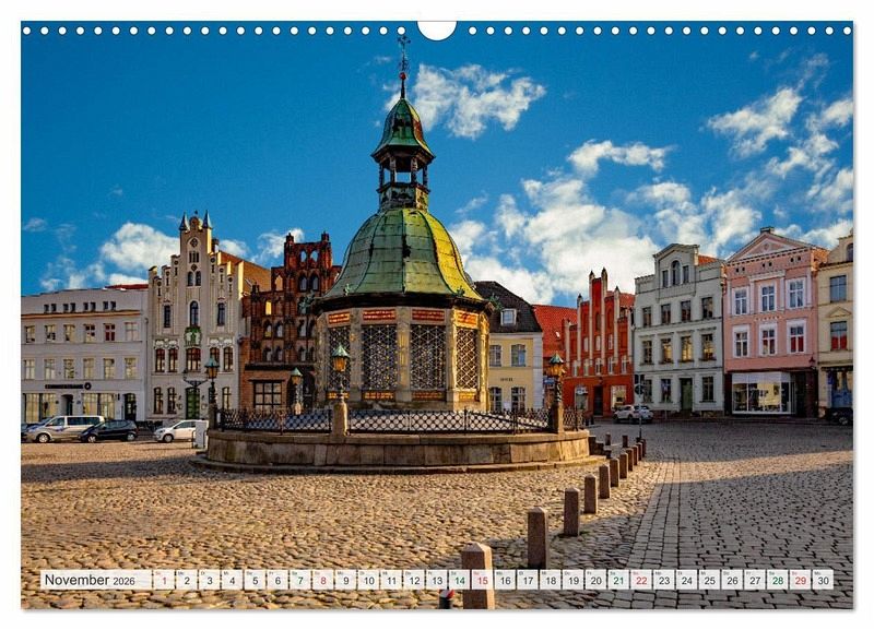 November: Die Wismarer Wasserkunst auf dem Marktplatz der Hansestadt