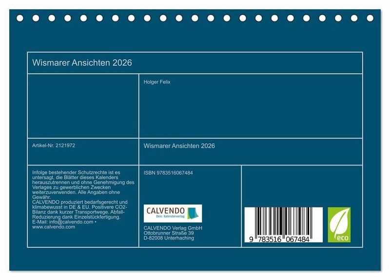 QUALITÄT - HochwertigerFotokalender mit 12 wunderschönen Motiven auf lichtbeständigem Bilderdruckpapier, robuste Spiralbindung.NACHHALTIG - deutliche Abfallreduzierung durch bedarfsgerechte Einzelstückfertigung, umweltfreundliches FSC-zertifiziertes Papier, Produktion in Deutschland, klimabewusste Logistik.PERFEKTES GESCHENK - Kalender für Freunde und Familie, für Kinder und Erwachsene, jung und alt, zu Weihnachten, Geburtstag oder zwischendurch.VIELFALT - Bildkalender in verschiedenen Formaten, z.B. DIN A5, DIN A4, DIN A3 sowie DIN A2. Ob Naturmotiv, Gemälde oder Fotos, ideal für ein persönliches Wohlfühlambiente.Wismar, Stadt der Backsteingotik - Perle an der Ostsee. Mittelalterliche Architektur und freundliche Menschen kennzeichnen die Hansestadt. von Autor(in): Holger Felix