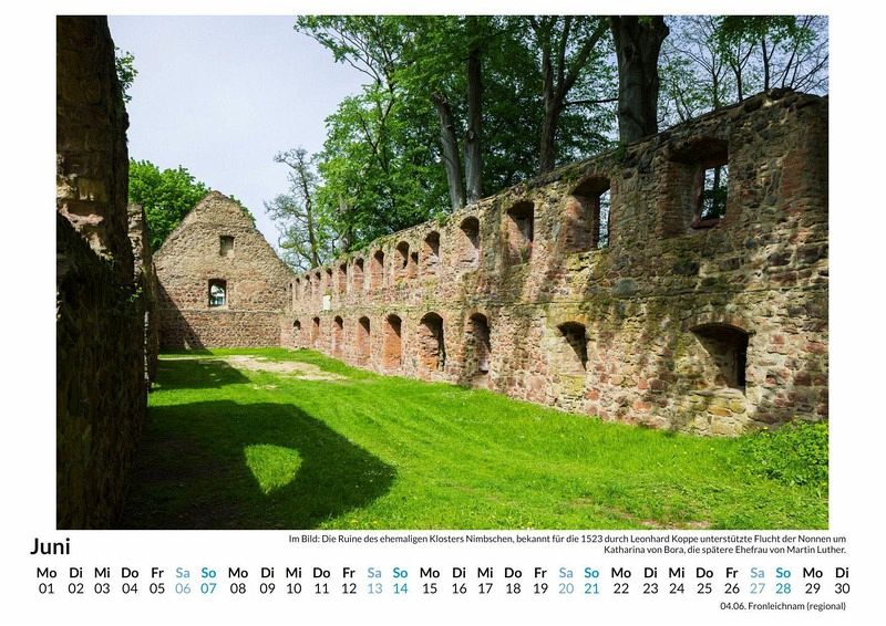 Entdecken Sie die historische Schönheit Wittenbergs mit unserem exklusiven Monats-Wandkalender! Lassen Sie sich Monat für Monat von 12 atemberaubenden Motiven dieser geschichtsträchtigen Stadt verzaubern - von der berühmten Schlosskirche bis hin zu malerischen Altstadtansichten. Gedruckt auf hochwertigem, lichtbeständigem Bilderdruckpapier, bringt dieser Kalender die faszinierende Atmosphäre Wittenbergs direkt in Ihr Zuhause. Nachhaltigkeit liegt uns am Herzen: Unsere Kalender werden in Deutschland auf FSC-zertifiziertem Papier produziert. Perfekt als Geschenk oder für die eigene Wand - holen Sie sich ein Stück Geschichte in Ihr Leben! Jetzt bestellen und jeden Monat neu genießen! Hochwertig Erleben Sie ein Jahr voller Eleganz mit unserem Premium-Fotokalender. Jedes der 12 Motive ist auf hochwertigem, lichtbeständigem Bilderdruckpapier gedruckt, um die Lebendigkeit jedes Bildes zu bewahren. Die robuste Spiralbindung gewährleistet Langlebigkeit und einfache Handhabung. Nachhaltig Unser Engagement für die Umwelt spiegelt sich in jedem Exemplar wider. Durch die Produktion auf Abruf reduzieren wir signifikant unseren Abfall. Wir verwenden ausschließlich umweltfreundliches, FSC-zertifiziertes Papier. Stolz gefertigt in Deutschland, achten wir bei unserer Logistik auf Klimaschutz, um unseren ökologischen Fußabdruck zu minimieren. Das ideale Geschenk Dieser Kalender ist das perfekte Präsent für jeden Anlass - ob Weihnachten, Geburtstage oder einfach als liebevolle Aufmerksamkeit zwischendurch. Geeignet für Freunde, Familie, Kinder und Erwachsene gleichermaßen, bereichert er jedes Zuhause mit seiner Vielfalt und Schönheit, unabhängig vom Alter der Beschenkten.