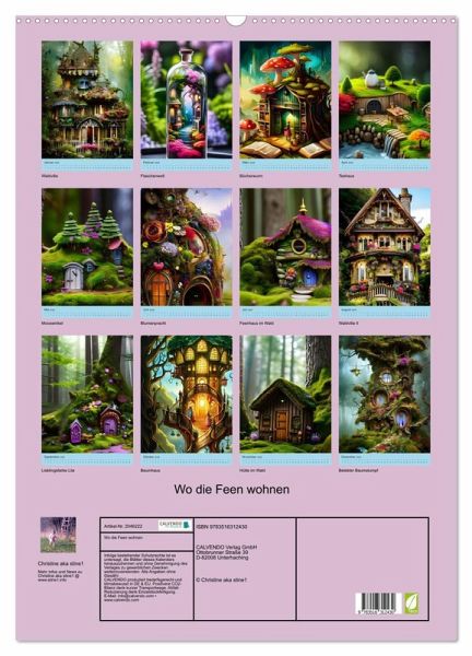 Tauchen Sie ein in die faszinierende Welt der Fantasy-Architektur! Der Wandkalender "Wo die Feen wohnen" entführt Sie in eine magische Dimension, erschaffen durch Künstliche Intelligenz. Zwölf atemberaubende Kunstwerke präsentieren fantasievolle Gebäude, die Sie in Staunen versetzen werden. Lassen Sie sich von den kunstvoll gestalteten Häuschen und Gärten verzaubern. Bringen Sie einen Hauch von Magie in Ihr Zuhause mit diesem einzigartigen Wandkalender.