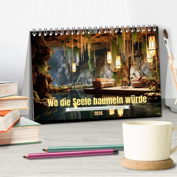 Wer möchte nicht gern mal Urlaub machen in einer Suite, die so richtig voller Luxus ist? Dieser Kalender zeigt zwölf fantasievolle Räume, in denen man sich gern entspannen möchte. Ob in Höhlen, kuschelig im Eis oder mit eigenem Pool und Aquarium... man könnte es sich wunderbar gut gehen lassen und die Seele könnte baumeln.