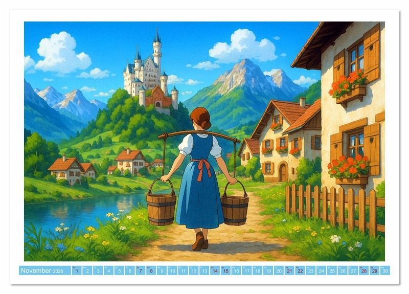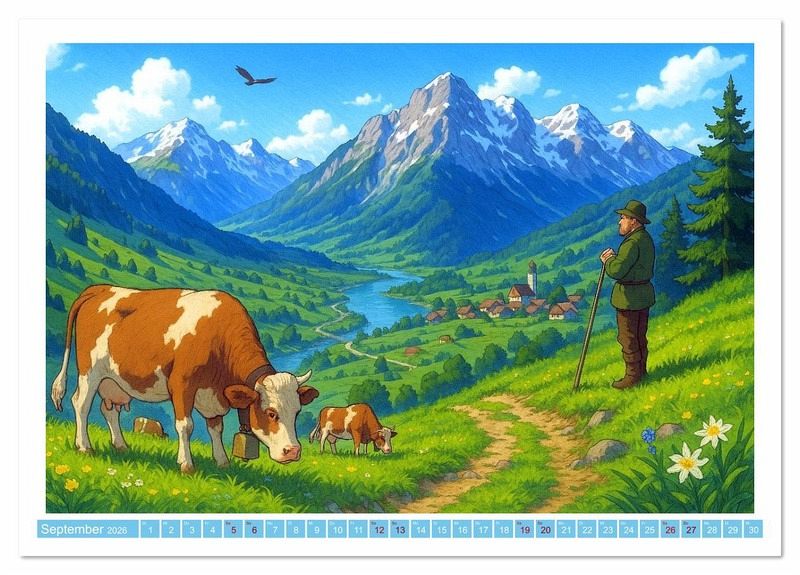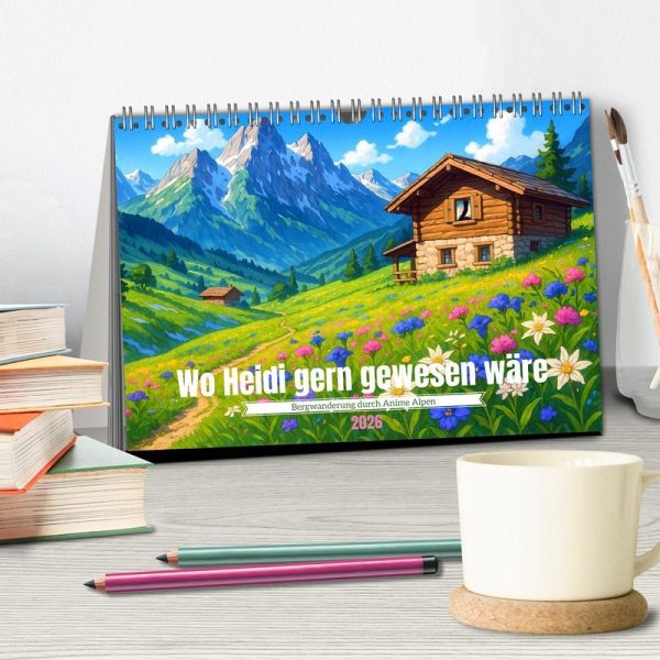 Tauche ein in eine Welt, in der Almwiesen flüstern und Gipfelträume lebendig werden - inszeniert im einzigartigen Stil japanischer Animekunst. Dieser Kalender zeigt zwölf liebevoll gestaltete Alpenidyllen, erschaffen mit Hilfe künstlicher Intelligenz. Klischees werden hier zur Kunst, Fantasie trifft auf Heimweh. Ideal für alle, die Sehnsucht nach den Bergen mit einem Hauch Fernost verbinden.