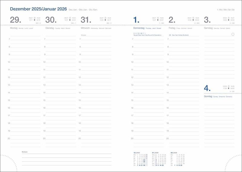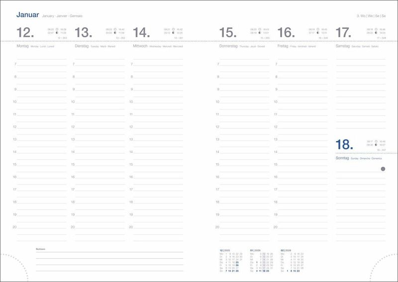 - Ein treuer Begleiter für 365 Tage voller Möglichkeiten: Der Chefplaner mit Wochenkalendarium ist eine unverzichtbare Organisationshilfe für alle Termine- Zwei Seiten pro Woche: Der Buchkalender im A5-Format bietet Platz für alle To-Dos, sodass nichts unter den Tisch fällt- Von Reiseplanung bis Zahnarzttermin: Der blaue Taschenplaner mit viersprachigem Kalendarium sorgt für Terminübersicht rund ums Jahr- Die zahlreichen Zusatz-Features wie der Adressteil oder die Liste der Schulferien machen diesen Cheftimer zum praktischen Allrounder- Für alle, die auch unterwegs den Überblick bewahren wollen: die Taschenkalender von Heye aus dem Athesia KalenderverlagSprachen: Deutsch, Englisch, Italienisch