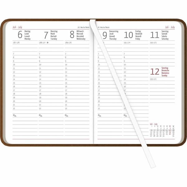 Ansprechendes Design: Umweltfreundliches Strukturpapier in warmer Malzfarbe perfekt für alle, die Nachhaltigkeit und Stil schätzenUmfassende Organisation: 192 Seiten mit Monatsübersichten, Zeiteinteilung von 07:00 22:00 Uhr und zusätzlichem Platz für NotizenÜbersichtliche Wochenansicht: 1 Woche pro Doppelseite ideal für eine schnelle und klare TerminplanungInternational nutzbar: 4-sprachiges Kalendarium (DE/FR/IT/GB) optimal für internationale Projekte und KontakteHandliches Format: Kompakte Größe A6 (11×15 cm) passt in jede Tasche und ist perfekt für unterwegs