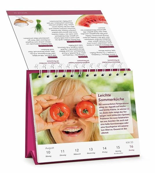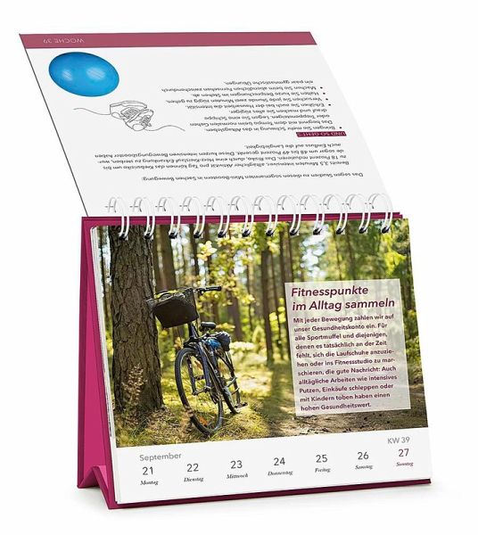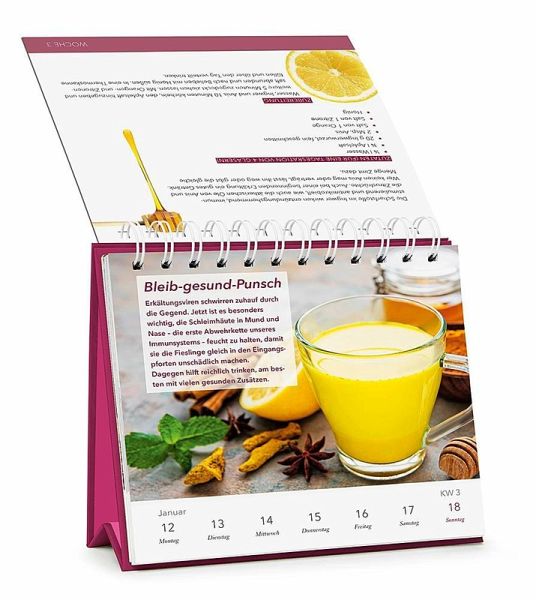 Tischkalender 2026 zum Aufstellen mit Spiralbindung (Maße 17,2cm x 17,8cm)Einfach und schnell umsetzbare TippsNachhaltige Veränderungen ohne großen Aufwand umsetzen und gesunde Gewohnheiten dauerhaft im Alltag verankernEin Schwerpunktthema pro Kalenderwoche mit schnellen Rezepten, Übungen und Hilfestellungen Jede Woche wertvolle Tipps zu den Themen Prävention, Mind-Body-Medizin, soziales Miteinander, Self-Care, Ernährung, Bewegung, Entspannung und Stress-Management