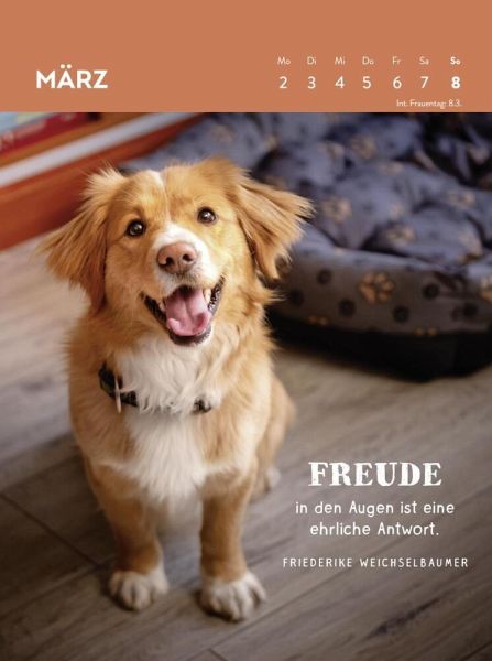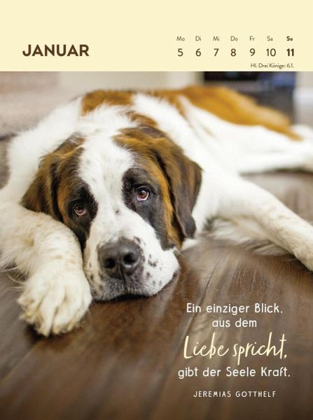 Für alle, die dem Blick aus treuen Hundeaugen einfach nicht wiederstehen können (und wollen) ist dieser zauberhafte Aufstellkalender Hunde sind die besten Freunde 2026 das ideale Geschenk: Die abwechslungsreichen Hundefotos zeigen den besten Freund des Menschen in seiner ganzen Vielfalt, vom sanften Kuschler über die unternehmungslustige Sportskanone und den neugierigen Abenteurer bis zum liebevollen Tröster. In Kombination mit den passenden Zitaten wird der Hundekalender 2026 zum dekorativen Blickfang für alle Hundemenschen.