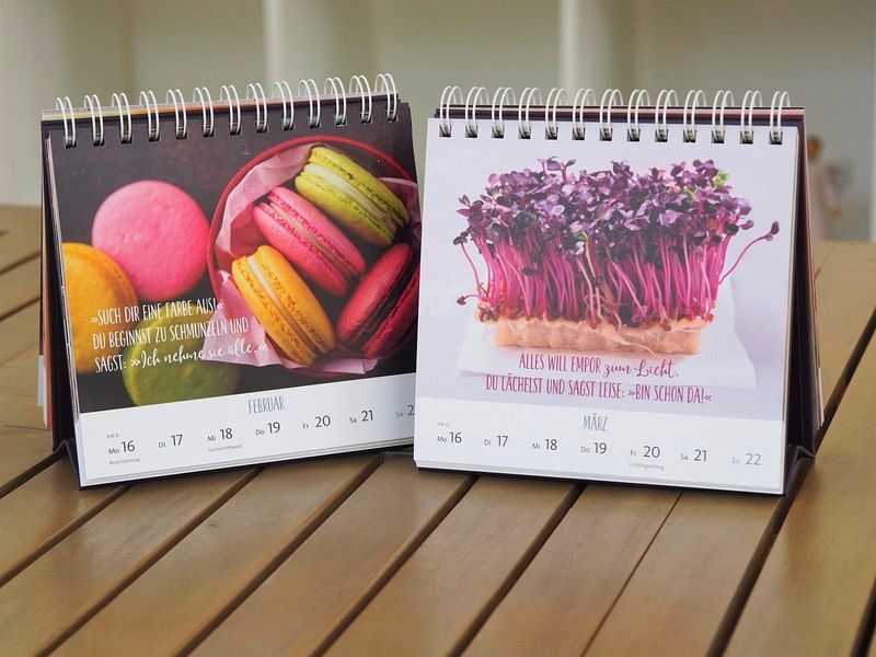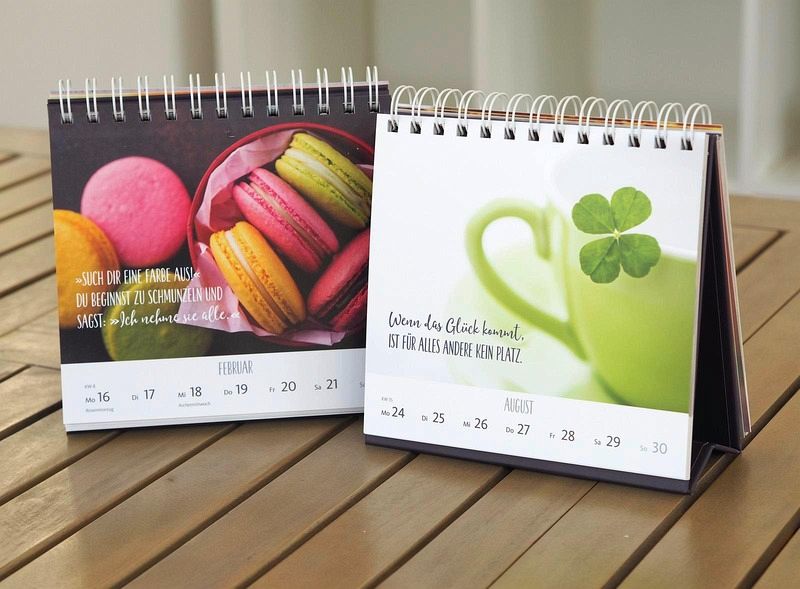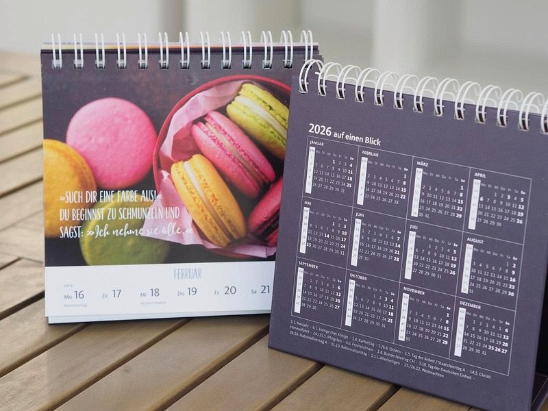 Stabiler Aufsteller aus Karton, Kalender-Format: 16,6 x 15,8 cm, große Spiralbindung, für ein leichtes Umdrehen der KalenderblätterGeschmackvolles Dekorations-Element und farbenfroher Hingucker