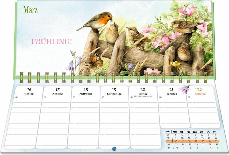 Mit 53 zauberhaften Naturmotiven und zu Herzen gehenden Texten der Künstlerin Marjolein Bastin lädt dieser persönliche Tischkalender jede Woche aufs Neue dazu ein, das Leben von der positiven Seite zu betrachten. Dank großer Eintragfelder zu frei wählbaren Uhrzeiten an jedem Tag finden alle Termine problemlos Platz. Die Monatsübersicht auf jeder Seite erleichtert das Planen im Büro oder zu Hause. Mithilfe des hochwertigen Aufstellers steht das Motiv auf dem Schreibtisch im Mittelpunkt und ermöglicht das mühelose Schreiben auf ebener Fläche - auch dank des hochwertigen FSC-zertifizierten Papiers. Ein bezauberndes und inspirierendes Accessoire für jeden Schreibtisch!