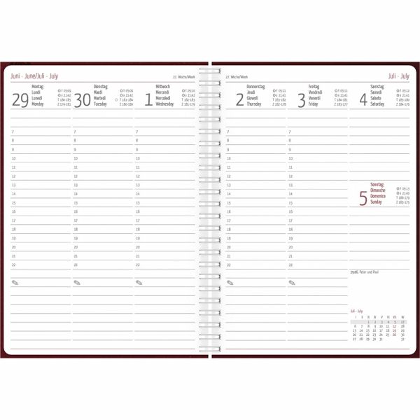 Nachhaltiger Einband: Aus umweltfreundlichem Strukturpapier mit floraler PrägungPraktisches Format: A5 (ca. 15×21 cm) kompakt für unterwegs und übersichtlich für ZuhauseÜbersichtliche Wochenplanung: 1 Woche pro Doppelseite, Montag Freitag mit Zeiteinteilung 07 22 Uhr, Platz für NotizenStabile Ringbindung: Einfaches Auf- und Umklappen der SeitenGut organisiert: Monatsübersichten Januar 2026 August 2027, Tages- & ZinstageszählerZusatzfunktionen: Jahresübersichten, Adress- & Notizseiten, wichtige Telefonvorwahlen, Ferientermine DE/AT/CHInternational nutzbar: 4-sprachiges Kalendarium (DE/FR/IT/GB) mit Feiertagen für DE/AT/CH/FR/ITNachhaltig produziert: FSC-zertifiziert, Druck mit Soja- statt ErdölfarbenDetails: 128 Seiten, Innenteil mit fein gerundeten Ecken