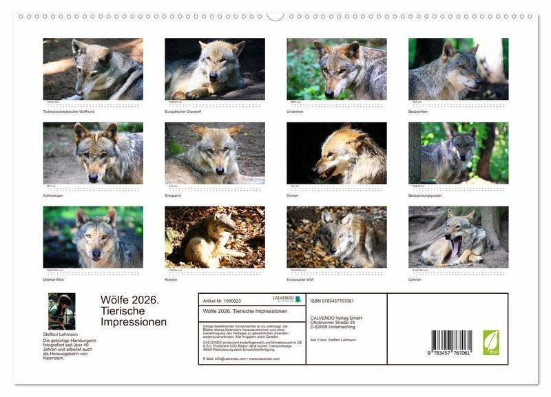 PREMIUM-LINIE - Brillanter Fotokalender mit 12 wunderschönen Motiven, Kunstdruck in Hochglanz in Museumsqualität.QUALITÄT - edle Materialien, stabile Rückwand mit 2 innovativen Einstecktaschen für eine optimale Präsentation an der Wand.NACHHALTIG - deutliche Abfallreduzierung durch bedarfsgerechte Einzelstückfertigung, umweltfreundliches FSC-zertifiziertes Papier, Produktion in Deutschland, klimabewusste Logistik.PERFEKTES GESCHENK - Kalender für Freunde und Familie, für Kinder und Erwachsene, jung und alt, zu Weihnachten, Geburtstag oder zwischendurch.12 bezaubernde Bilder von wilden Wölfen von Autor(in): Steffani Lehmann