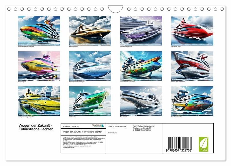 Tauchen Sie ein in die Welt der futuristischen Jachten. Unser innovativer Kalender präsentiert atemberaubende Bilder von High-Tech-Jachten, die die Grenzen des Möglichen sprengen. Von schwebenden Luxusjachten bis zu Superjachten, diese Meisterwerke der Technik werden Sie in Staunen versetzen. Der Kalender ist der perfekte Begleiter für Technikbegeisterte, Wassersportler und Träumer.