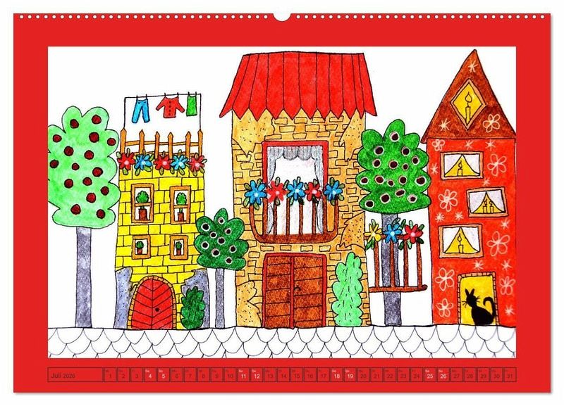 Lassen Sie sich Monat für Monat von bunten, farbenprächtiger Architektur mit Charme verzaubern. Bunte Hochhäuser, blumige Einzelhäuser und Hütten liebevoll handgemalt.