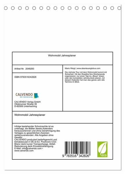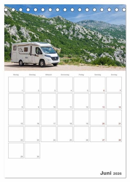 Die nächste Tour mit dem Wohnmobil kommt mit Sicherheit. Ob den Roadtrip fürs Wochenende organisieren, nur einen Tag ins "Blaue" düsen oder den kompletten Jahresurlaub planen, mit diesem Kalender hat man das ganze Jahr alle Termine im Blick.