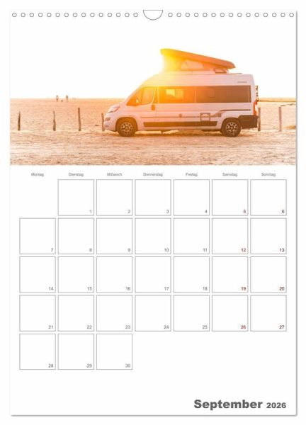 Die nächste Tour mit dem Wohnmobil kommt mit Sicherheit. Ob den Roadtrip fürs Wochenende organisieren, nur einen Tag ins "Blaue" düsen oder den kompletten Jahresurlaub planen, mit diesem Kalender hat man das ganze Jahr alle Termine im Blick.