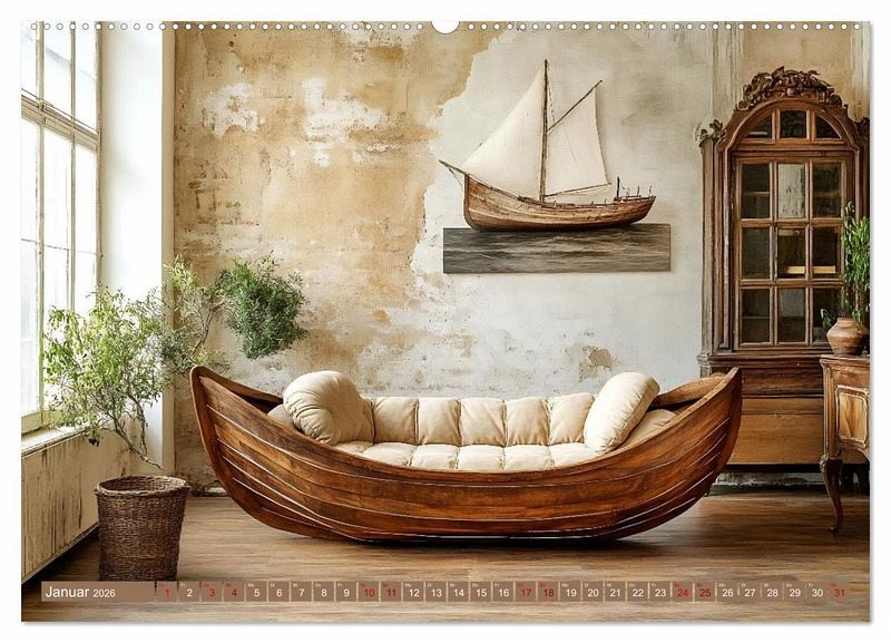 Januar: Vom Wasser ins Wohnzimmer: Dieses Ruderboot-Sofa bringt die Seele des Meeres in Ihr Zuhause.
