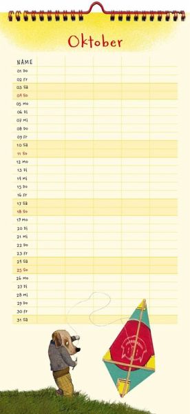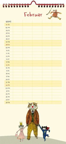 Mit hinreißenden Motiven von Wolf Erlbruch, klar und großzügig gestaltet.- 5 Spalten zum Eintragen- mit Ferienterminen und Jahresüberblick