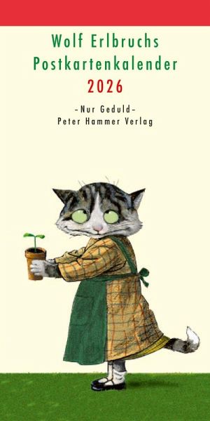 Wolf Erlbruchs hinreißende Motive zum Thema "Nur Geduld" erfahren im Postkartenkalender 2026 eine Neuauflage. Auf 13 Karten zum Heraustrennen zeigt Erlbruch wahre Musterbeispiele der lobenswerten Tugend und lässt dabei ihre voreilige Schwester, die Ungeduld, immer wieder aufblitzen. Was für ein Vergnügen!