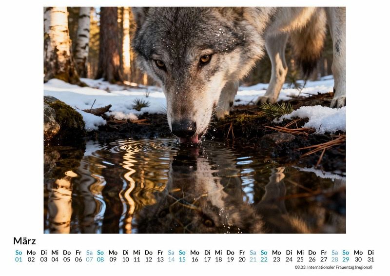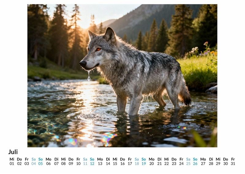 Sein Ruf hallt durch die Nacht, ein Echo aus den Tiefen unberührter Wälder. Der Wolf fasziniert die Menschheit seit jeher. Der Kalender "Wolf" ist eine Hommage an dieses majestätische Tier, das wie kein anderes für Wildnis, Freiheit und das Mysterium der Natur steht. Dieser Kalender ist eine passende Wahl: * Für alle, die eine tiefe Verbindung zur Natur und ihren ungezähmten Bewohnern spüren. * Für Menschen, die im Wolf mehr als nur ein Tier sehen, sondern ein starkes Symbol für Instinkt und Gemeinschaft. * Für jene, die ihre Wände mit Motiven schmücken möchten, die zum Nachdenken anregen und eine besondere Atmosphäre schaffen. Der Kalender begleitet durch die Jahreszeiten und zeigt den Wolf in all seinen Facetten: als wachsamen Jäger im Schnee, als Teil eines Rudels unter dem Mondlicht oder als stillen Beobachter am Rande einer Lichtung. Jedes Monatsbild wurde aus einer Fülle digitaler Informationen zu einer eigenständigen Vision komponiert. So entstehen Darstellungen, die die facettenreiche Persönlichkeit des Wolfes einfangen und seine geheimnisvolle Ausstrahlung unterstreichen. Was dieser Kalender bietet: * Zwölf Monatsmotive, die den Wolf in verschiedenen Szenarien und Stimmungen zeigen. * Ein übersichtliches Kalendarium, das Platz für eigene Notizen lässt. * Ein Begleiter für das ganze Jahr, der die Kraft und die Ruhe der Wildnis in den Alltag bringt. Dieser Kalender ist mehr als eine Sammlung von Bildern; er ist eine tägliche Erinnerung an die ungezähmte Kraft, die in der Natur und in uns selbst schlummert. Es ist Zeit, den Ruf der Wildnis zu beantworten und sich von der Aura des Wolfes inspirieren zu lassen.