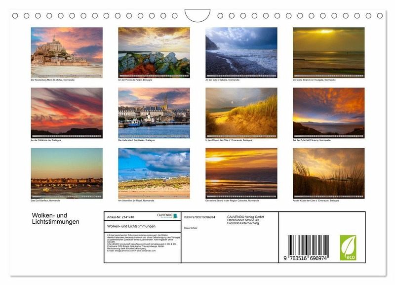 QUALITÄT - Hochwertiger Fotokalender mit 12 wunderschönen Motiven auf lichtbeständigem Bilderdruckpapier, robuste Spiralbindung mit Aufhängebügel.NACHHALTIG - deutliche Abfallreduzierung durch bedarfsgerechte Einzelstückfertigung, umweltfreundliches FSC-zertifiziertes Papier, Produktion in Deutschland, klimabewusste Logistik.PERFEKTES GESCHENK - Kalender für Freunde und Familie, für Kinder und Erwachsene, jung und alt, zu Weihnachten, Geburtstag oder zwischendurch.VIELFALT - Bildkalender in verschiedenen Formaten, z.B. DIN A5, DIN A4, DIN A3 sowie DIN A2. Ob Naturmotiv, Gemälde oder Fotos, ideal für ein persönliches Wohlfühlambiente.Ein Genuss für Seele und Geist von Autor(in): Klaus Scholz