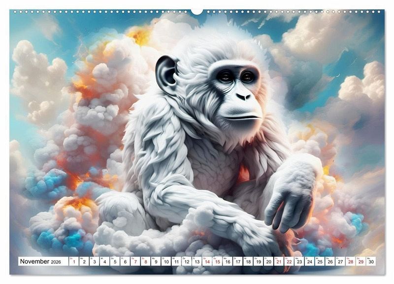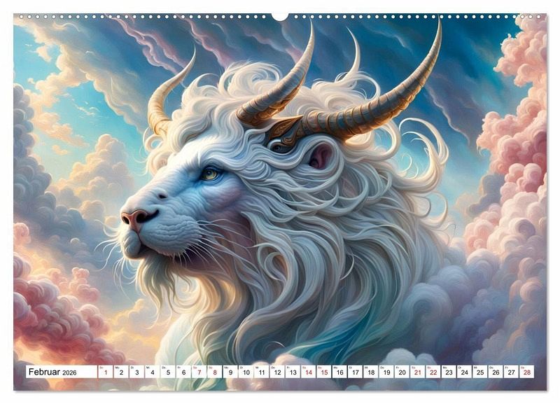 Kommen Sie mit auf eine abenteuerliche Reise in eine exotische Realität, in der majestätische Wolken mit Tieren verschmelzen. Jeder Monat unseres Kalenders zeigt ein atemberaubendes Bild eines Tieres, der aus den Wolken auftaucht und Sie mit seiner Schönheit verzaubert. Tauchen Sie ein in die mystische Atmosphäre und lasse dich von den Fantasie Bildern verzaubern.
