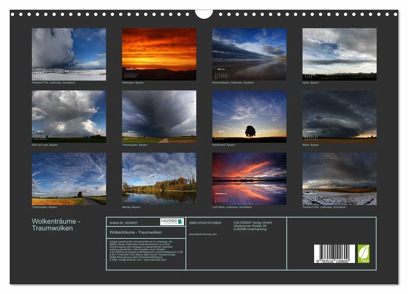 Keine Wolke gleicht einer anderen, lassen Sie sich von 12 grundverschiedenen Wolkenstimmungen das ganze Jahr über bezaubern. Wenn Sie Wolken mögen, dann ist Wolkenträume - Traumwolken der absolut richtige Kalender für Sie!