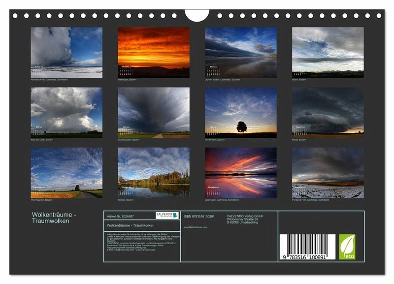 QUALITÄT - Hochwertiger Fotokalender mit 12 wunderschönen Motiven auf lichtbeständigem Bilderdruckpapier, robuste Spiralbindung mit Aufhängebügel.NACHHALTIG - deutliche Abfallreduzierung durch bedarfsgerechte Einzelstückfertigung, umweltfreundliches FSC-zertifiziertes Papier, Produktion in Deutschland, klimabewusste Logistik.PERFEKTES GESCHENK - Kalender für Freunde und Familie, für Kinder und Erwachsene, jung und alt, zu Weihnachten, Geburtstag oder zwischendurch.VIELFALT - Bildkalender in verschiedenen Formaten, z.B. DIN A5, DIN A4, DIN A3 sowie DIN A2. Ob Naturmotiv, Gemälde oder Fotos, ideal für ein persönliches Wohlfühlambiente.12 faszinierende Wetterstimmungen mit Traumwolken von Autor(in): Martina Cross