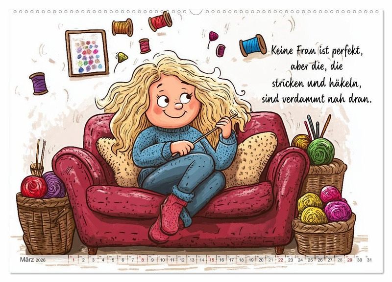Lass dich von diesem humorvollen Kalender durch das Jahr begleiten! Jeden Monat erwartet dich ein lustiger Spruch rund ums Stricken. Abgerundet wird der Kalender durch einzigartige, KI-generierte Bilder, die die Welt des Strickens liebevoll zum Leben erwecken. Perfekt für alle Strickfans, die nicht nur mit Wolle, sondern auch mit einem Lächeln im Gesicht durchs Jahr gehen möchten.