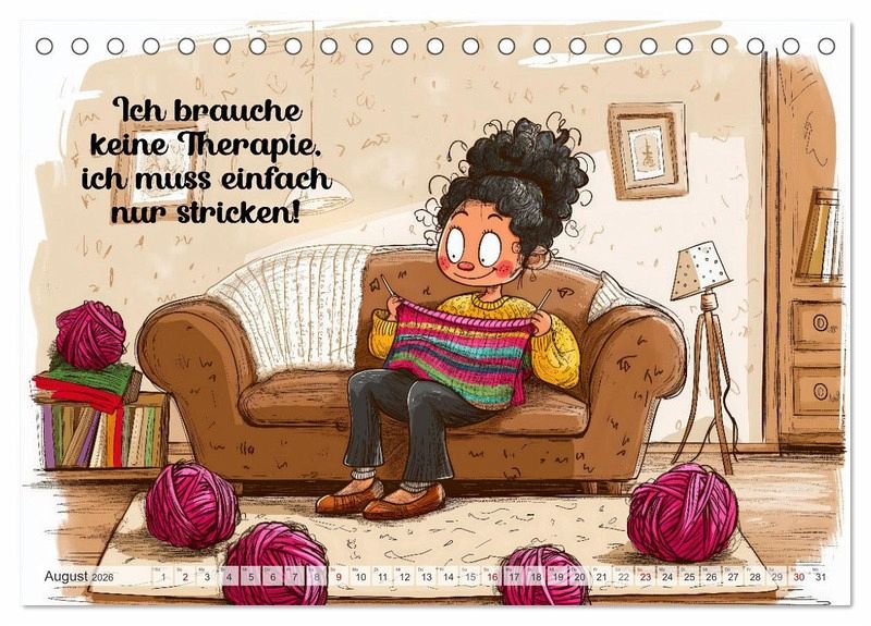 Lass dich von diesem humorvollen Kalender durch das Jahr begleiten! Jeden Monat erwartet dich ein lustiger Spruch rund ums Stricken. Abgerundet wird der Kalender durch einzigartige, KI-generierte Bilder, die die Welt des Strickens liebevoll zum Leben erwecken. Perfekt für alle Strickfans, die nicht nur mit Wolle, sondern auch mit einem Lächeln im Gesicht durchs Jahr gehen möchten.