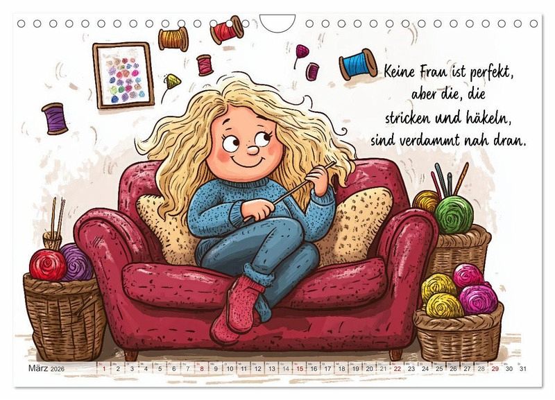 Lass dich von diesem humorvollen Kalender durch das Jahr begleiten! Jeden Monat erwartet dich ein lustiger Spruch rund ums Stricken. Abgerundet wird der Kalender durch einzigartige, KI-generierte Bilder, die die Welt des Strickens liebevoll zum Leben erwecken. Perfekt für alle Strickfans, die nicht nur mit Wolle, sondern auch mit einem Lächeln im Gesicht durchs Jahr gehen möchten.