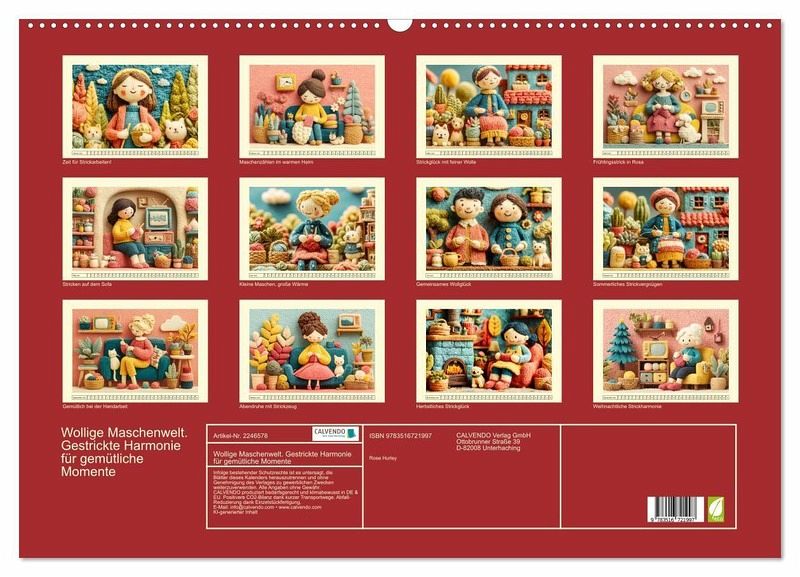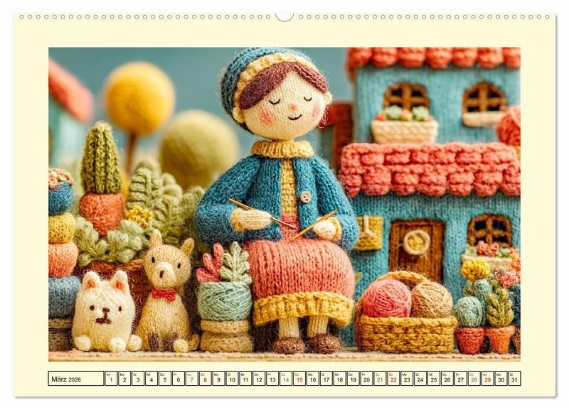 Dieser Kalender entführt in eine liebevoll gestrickte Parallelwelt, in der alles aus weicher Wolle und bunten Garnen besteht. Von den Menschen über ihre Kleidung bis hin zu Möbeln, Pflanzen und Tieren - alles scheint mit Herz und Hand erschaffen. Die Bilder wurden mit der Hilfe von KI erstellt und erzählen kleine, heitere Geschichten über Kreativität und Geborgenheit. Ein Kalender, der Monat für Monat ein Lächeln schenkt und die Wärme des Handwerks spürbar macht.