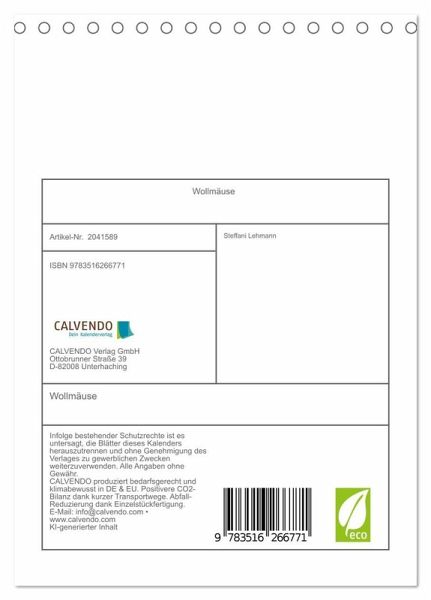 QUALITÄT - Hochwertiger Fotokalender mit 12 wunderschönen Motiven auf lichtbeständigem Bilderdruckpapier, robuste Spiralbindung.NACHHALTIG - deutliche Abfallreduzierung durch bedarfsgerechte Einzelstückfertigung, umweltfreundliches FSC-zertifiziertes Papier, Produktion in Deutschland, klimabewusste Logistik.PERFEKTES GESCHENK - Kalender für Freunde und Familie, für Kinder und Erwachsene, jung und alt, zu Weihnachten, Geburtstag oder zwischendurch.VIELFALT - Bildkalender in verschiedenen Formaten, z.B. DIN A5, DIN A4, DIN A3 sowie DIN A2. Ob Naturmotiv, Gemälde oder Fotos, ideal für ein persönliches Wohlfühlambiente.Süße Mäuse aus Wolle von Autor(in): Steffani Lehmann