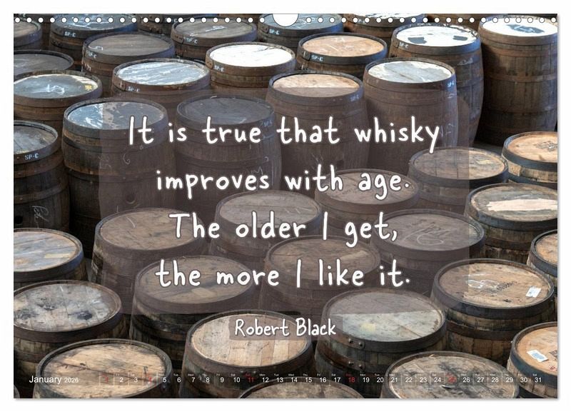 Whisky, the water of life, has been an endless source of inspiration for many poets and philosophers. These wise sayings invite us to ponder, ideally with a dram of your favourite malt in your hand. Accompanied by matching photos of Scotland this calendar will be an eye-catcher on your wall.