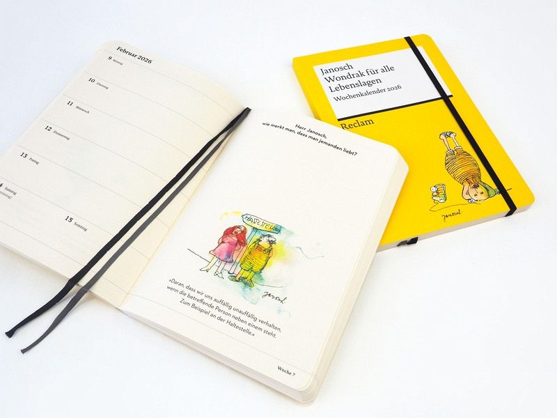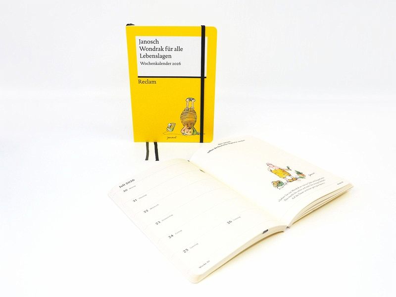 Wondraks Wochenkalender 2026 im Design der Universal-Bibliothek ist ein humorvoller Begleiter durch das Jahr. Mit den Lebensweisheiten von Janoschs Kultfigur wird jede Woche zu einem kleinen Highlight. Der Taschenkalender bietet pro Doppelseite links ein übersichtliches Wochenkalendarium und rechts Platz für Notizen und persönliche Eintragungen. Dazu gibt es eine charmante Wondrak-Illustration. Der stilvolle Buchkalender 2026 mit Wochenkalendarium verleiht dem Alltag eine Prise Humor!
