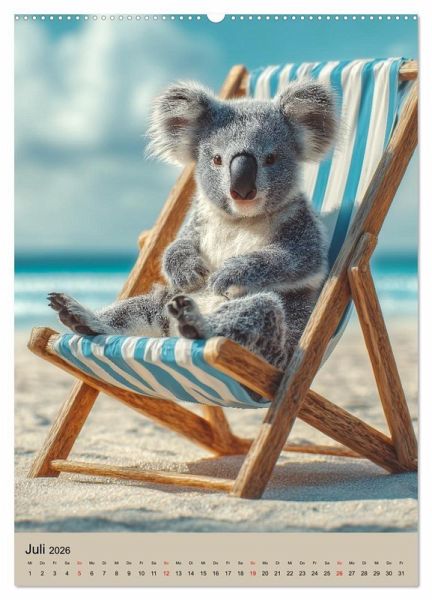Juli: Koala sitzt im gestreiften Strandstuhl