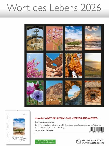 Der Kalender »Wort des Leben« erscheint für das Jahr 2026 zum 41. Mal. Die Fertigung des Kalenders, der in einer Augsburger Druckerei klimaneutral auf fsc-zertifiziertem Papier gedruckt wird, hat wieder mit großem Einsatz eine Beschützende Werkstätte in München übernommen, in der die Mitarbeiterinnen und Mitarbeiter je nach ihren Fähigkeiten die Kalenderblätter zusammentragen, die Spirale einziehen und die Faltkarten in die vorgestanzten Schlitze einstecken..Mit Staffelpreisen