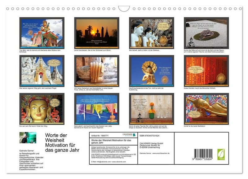 Erleben Sie ein Jahr voller Inspiration und Entdeckungen mit dem wunderschönen Kalender "Worte der Weisheit" Jeder Monat bietet eine neue Chance, in die tiefe Weisheit der buddhistischen Lehren einzutauchen und das Beste für sich herauszuholen.