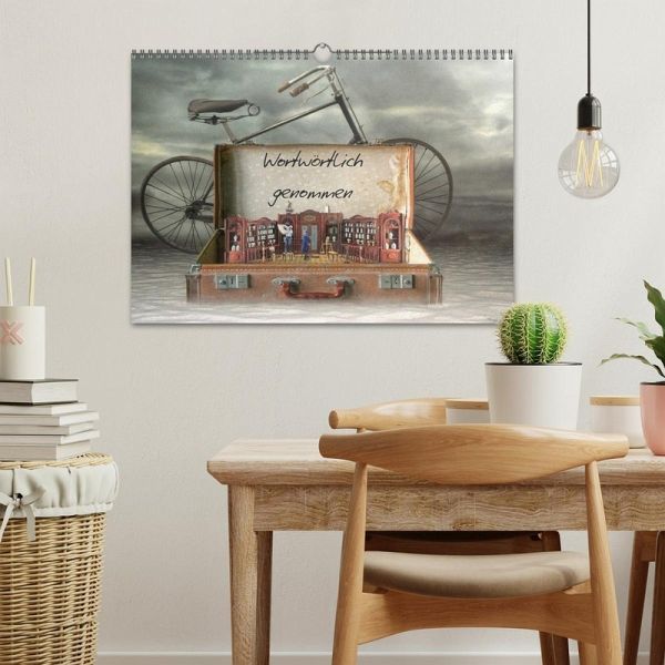 Was bekommt man wohl zu sehen, wenn man solche Ausdrücke einmal wortwörtlich nimmt? Dieser Kalender beinhaltet zwölf einmalige, surreale Wortspielereien, die auf humorvolle Weise bildlich dargestellt zum Rätseln und Schmunzeln anregen.