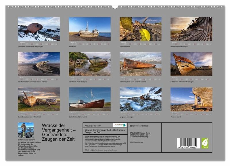 PREMIUM-LINIE - Brillanter Fotokalender mit 12 wunderschönen Motiven, Kunstdruck in Hochglanz in Museumsqualität.QUALITÄT - edle Materialien, stabile Rückwand mit 2 innovativen Einstecktaschen für eine optimale Präsentation an der Wand.NACHHALTIG - deutliche Abfallreduzierung durch bedarfsgerechte Einzelstückfertigung, umweltfreundliches FSC-zertifiziertes Papier, Produktion in Deutschland, klimabewusste Logistik.PERFEKTES GESCHENK - Kalender für Freunde und Familie, für Kinder und Erwachsene, jung und alt, zu Weihnachten, Geburtstag oder zwischendurch.Vergessene Schiffswracks erzählen Monat für Monat eine mystische Geschichte. von Autor(in): Johann Schörkhuber