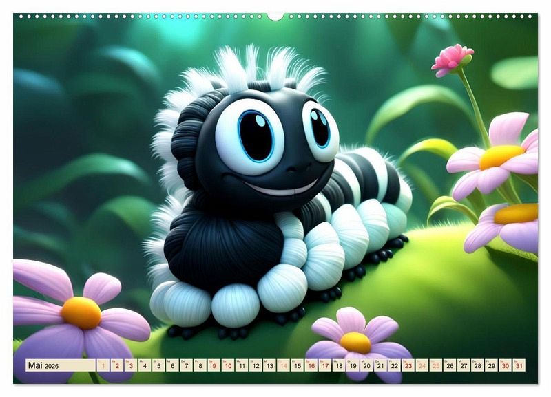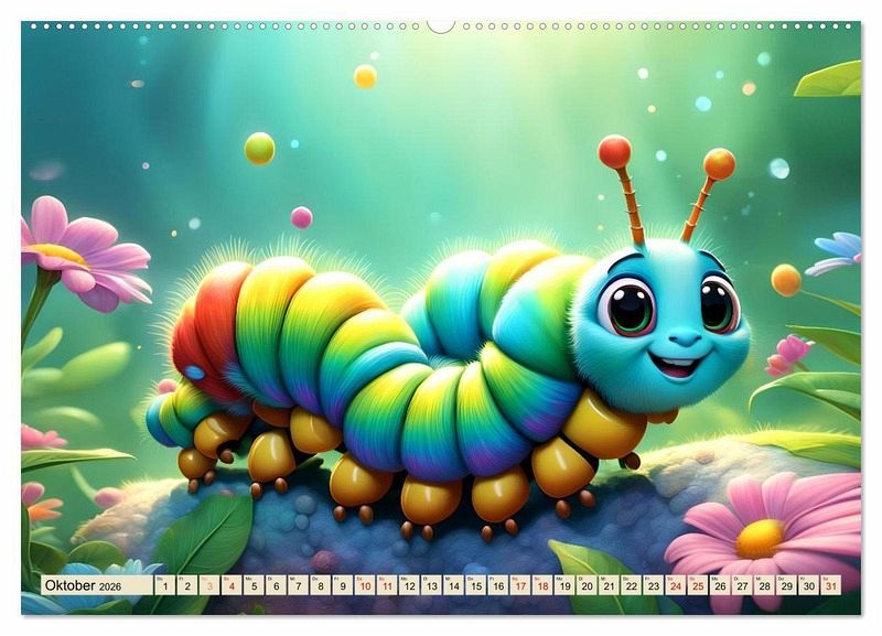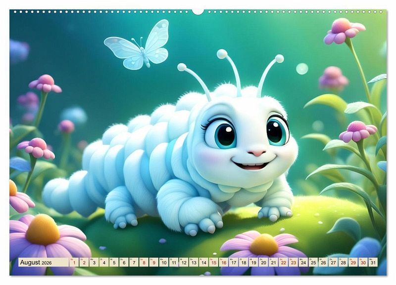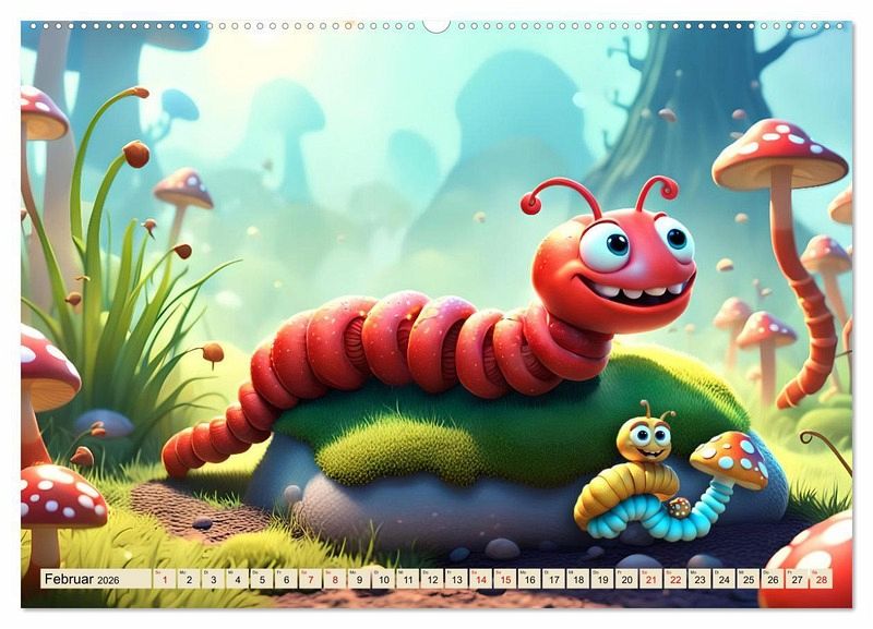 Bitte lächeln, ruft dieser einzigartige Kalender, der speziell für Kinder entwickelt wurde. Jedes Bild wurde mit KI-Technologie erstellt und zeigt glücklich lachende Würmchen, die garantiert ein Lächeln auf die Gesichter der Kleinen zaubern. Spielerisch lernen die Kinder die Monate und Tage kennen, während sie sich an den fröhlichen Würmchen erfreuen.