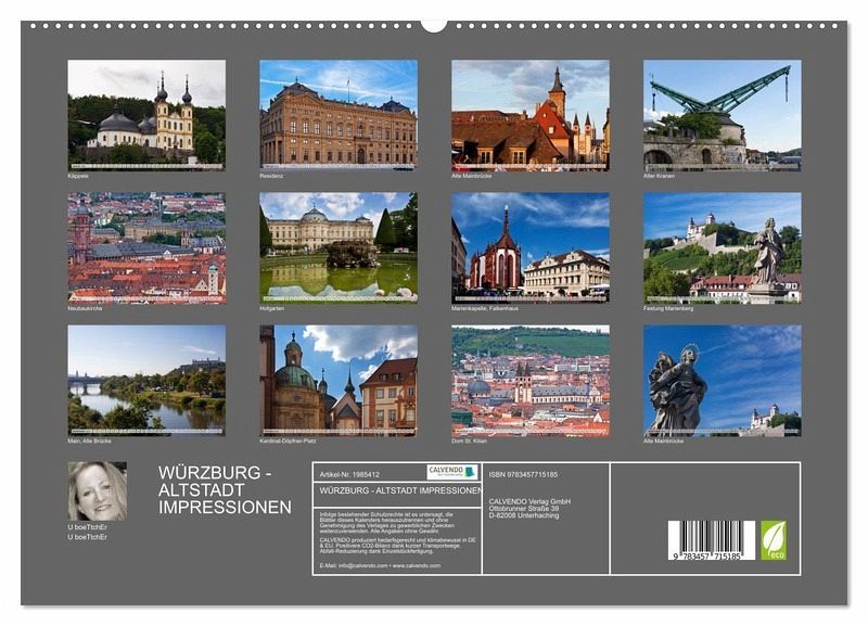 PREMIUM-LINIE - Brillanter Fotokalender mit 12 wunderschönen Motiven, Kunstdruck in Hochglanz in Museumsqualität.QUALITÄT - edle Materialien, stabile Rückwand mit 2 innovativen Einstecktaschen für eine optimale Präsentation an der Wand.NACHHALTIG - deutliche Abfallreduzierung durch bedarfsgerechte Einzelstückfertigung, umweltfreundliches FSC-zertifiziertes Papier, Produktion in Deutschland, klimabewusste Logistik.PERFEKTES GESCHENK - Kalender für Freunde und Familie, für Kinder und Erwachsene, jung und alt, zu Weihnachten, Geburtstag oder zwischendurch.Würzburg - Barockstadt mit gemütlichem Flair von Autor(in): U boeTtchEr
