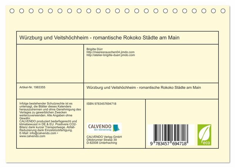 QUALITÄT - Hochwertiger Fotokalender mit 12 wunderschönen Motiven auf lichtbeständigem Bilderdruckpapier, robuste Spiralbindung.NACHHALTIG - deutliche Abfallreduzierung durch bedarfsgerechte Einzelstückfertigung, umweltfreundliches FSC-zertifiziertes Papier, Produktion in Deutschland, klimabewusste Logistik.PERFEKTES GESCHENK - Kalender für Freunde und Familie, für Kinder und Erwachsene, jung und alt, zu Weihnachten, Geburtstag oder zwischendurch.VIELFALT - Bildkalender in verschiedenen Formaten, z.B. DIN A5, DIN A4, DIN A3 sowie DIN A2. Ob Naturmotiv, Gemälde oder Fotos, ideal für ein persönliches Wohlfühlambiente.Die Sehenswürdigkeiten von Würzburg und Veitshöchheim in farbenfrohen Fotografien sind hier zu bestaunen von Autor(in): Brigitte Dürr