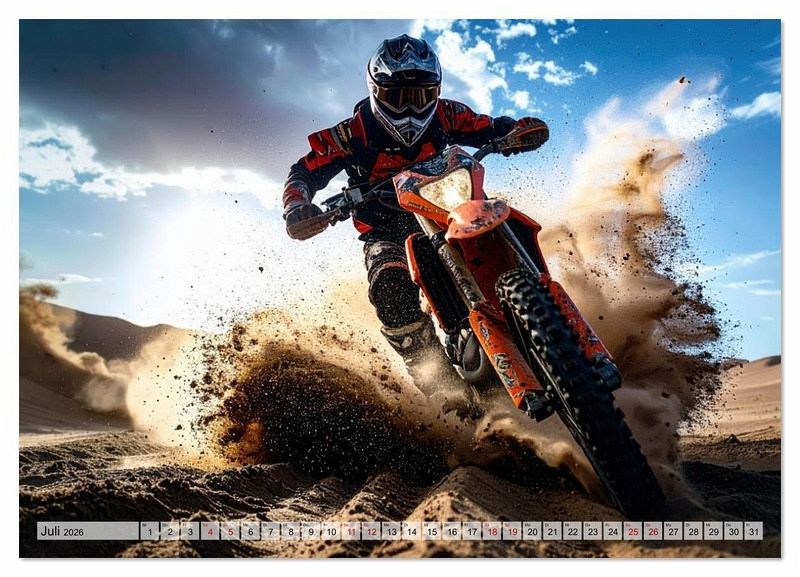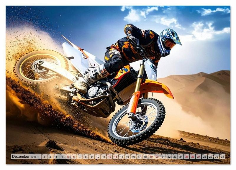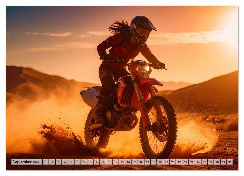 Entdecke den ultimativen Kalender "Wüstenabenteuer: Spektakuläre Moto-Rallys" - ein faszinierender Blick auf die atemberaubende Welt des Offroad-Motorsports. Die dynamischen Bilder zeigen mutige Männer und Frauen, die in der endlosen Wüste alles geben, um ihre Grenzen zu überwinden. Mit beeindruckenden Szenen voller Staub, Geschwindigkeit und sportlichem Ehrgeiz fangen sie die Anstrengung und Leidenschaft ein, die diesen Sport so einzigartig machen. Ob bei Tag oder Nacht, diese Bilder erinnern uns daran: Beim Wüstenrennen zählt nur eins - dabei sein, alles geben und den eigenen Traum verfolgen. Ein Kalender, der Abenteuerlust weckt und die Kraft des menschlichen Willens feiert!