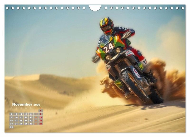 Erlebe die härteste Rallye der Welt - Monat für Monat. Unser Kalender zeigt die spektakulärsten Momente der Dakar auf zwei Rädern.