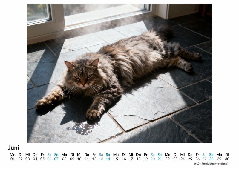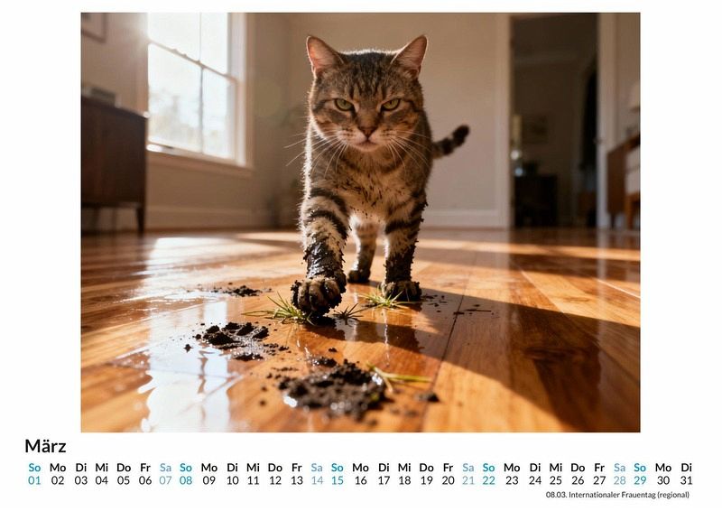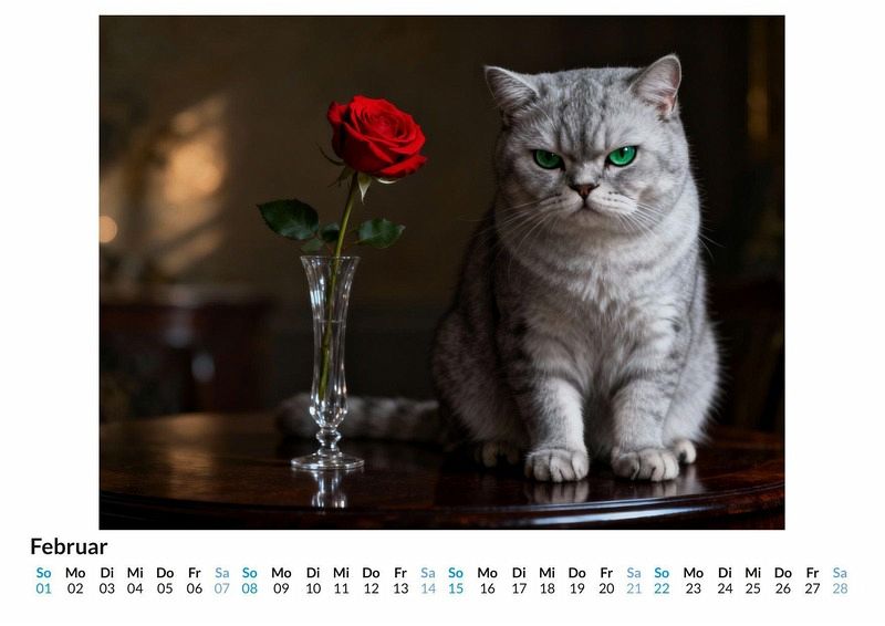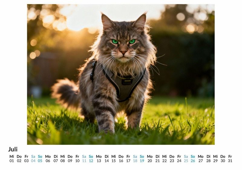 Man sagt, Katzen seien elegante und anmutige Wesen. Doch was passiert, wenn die Samtpfote den Kaffee am Morgen verweigert oder der Lieblingsplatz bereits besetzt ist? Der Kalender "Wütende Katzen" fängt genau diese Momente ein. Er präsentiert eine Sammlung von Porträts, die eine ganz andere Seite unserer felinen Mitbewohner zeigen: pure, unverfälschte Mürrischkeit. Dieser Kalender ist ideal: Für alle Katzenfreunde, die wissen, dass ihre Lieblinge auch eine dunkle Seite haben. Als Geschenk für Menschen mit einem Sinn für trockenen Humor und Sarkasmus. Für jeden, der eine tägliche Dosis Heiterkeit durch tierische Missbilligung zu schätzen weiß. Jedes der zwölf Monatsbilder ist eine sorgfältig ausgewählte Komposition, die den charakteristischen Ausdruck der Verachtung perfekt zur Geltung bringt. Diese einzigartigen Katzenporträts wurden durch das Zusammenspiel von kreativen Ideen und komplexen Rechenprozessen zum Leben erweckt, um eine ganz neue Art von Katzenfotografie zu schaffen. Von subtiler Irritation bis hin zu offener Empörung begleitet jeder Monat ein Gesicht, das Bände spricht, ohne ein einziges Wort zu sagen. Was der Kalender bietet: Zwölf Monatsblätter mit unterschiedlichen, mürrischen Katzenmotiven. Ein praktisches Kalendarium zur Organisation von Terminen. Eine monatliche Erinnerung daran, das Leben nicht immer zu ernst zu nehmen. Der Kalender "Wütende Katzen" ist mehr als nur ein Zeitplaner. Er ist eine Hommage an die unbeeindruckte Majestät der Katze und eine Quelle der Erheiterung für das ganze Jahr. Es lohnt sich, einen Blick auf die mürrischen Gesichter zu werfen, die jeden Monat zu einem kleinen Erlebnis machen.
