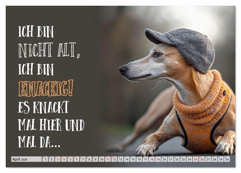 Entdecke jeden Monat eine frische Portion Hundehumor mit tapsigen Sportmuffeln, treuen Augen und der wunderbaren Erkenntnis, dass das Leben am schönsten ist, wenn man es mit wedelndem Schwanz und einem breiten Grinsen genießt. Perfekt für alle, die mit einem Augenzwinkern älter werden, denn Altwerden bedeutet nicht aufzugeben, sondern einfach längere Nickerchen und noch mehr Bauchkrauler einzuplanen. Mit viel Liebe, einer guten Portion Lachen und KI erschaffen.