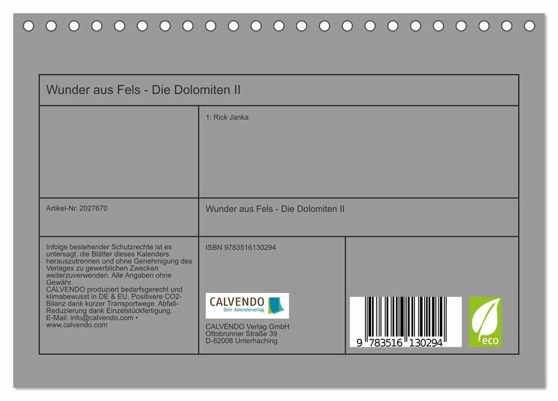 QUALITÄT - Hochwertiger Fotokalender mit 12 wunderschönen Motiven auf lichtbeständigem Bilderdruckpapier, robuste Spiralbindung.NACHHALTIG - deutliche Abfallreduzierung durch bedarfsgerechte Einzelstückfertigung, umweltfreundliches FSC-zertifiziertes Papier, Produktion in Deutschland, klimabewusste Logistik.PERFEKTES GESCHENK - Kalender für Freunde und Familie, für Kinder und Erwachsene, jung und alt, zu Weihnachten, Geburtstag oder zwischendurch.VIELFALT - Bildkalender in verschiedenen Formaten, z.B. DIN A5, DIN A4, DIN A3 sowie DIN A2. Ob Naturmotiv, Gemälde oder Fotos, ideal für ein persönliches Wohlfühlambiente.Die Dolomiten, eine einzigartige Gebirgsformation von Autor(in): Rick Janka